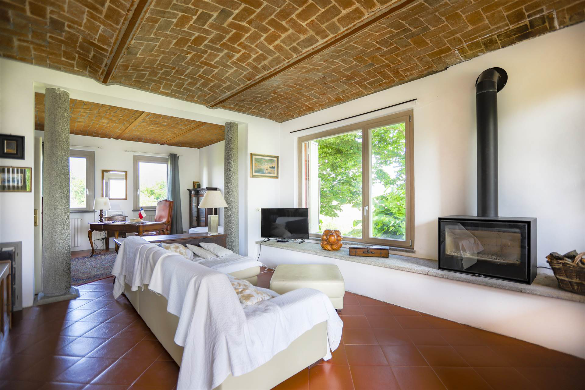 The house is in a unique location: surrounded by nature and green spaces with breathtaking views of the countryside, yet centrally located with easy access to shopping, restaurants, and cultural attractions. Here you can enjoy complete peace and privacy without having to forego the conveniences of everyday life.